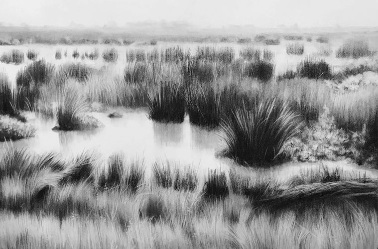 "Distant Fog Bank, Galveston", charcoal on paper, 30"x44"